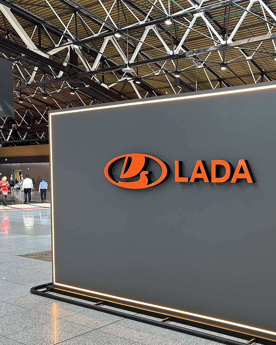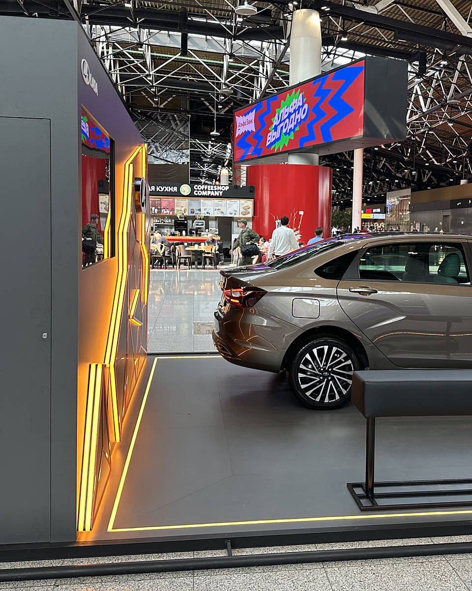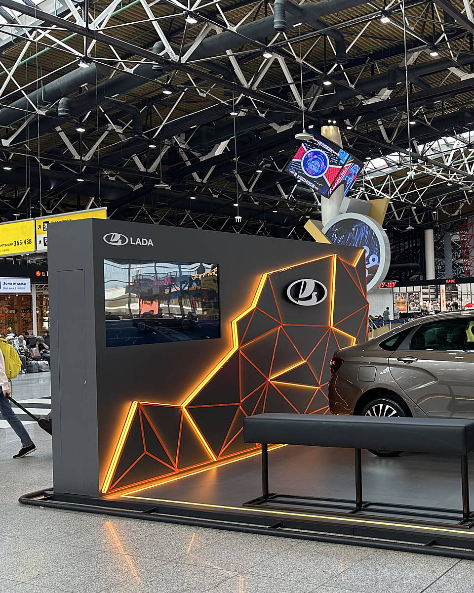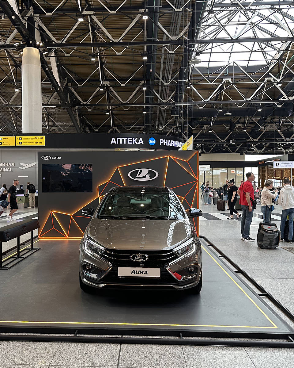 Стенд для новой модели АвтоВАЗа LADA Aura в аэропорту Шереметьево.